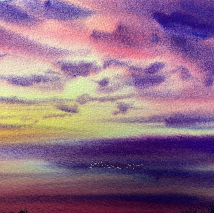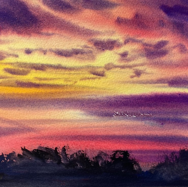 Summer sunset 1 (Original Gouache and Watercolour painting) sunset, sunset paint