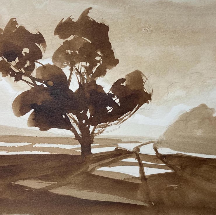 Pure original sepia ink painting