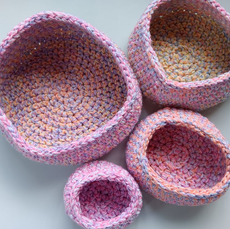 Crochet Nesting Baskets (Pastel Pink) - set of 4, so practical!