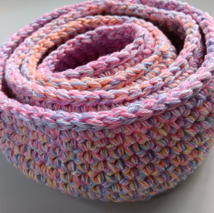 NEW SHOP! I love crocheting and creating beautiful and practical pieces and sourcing good quality yarns. These nesting baskets are made from a luxury variegated yarn. I have sets in my bedroom to hold makeup and trinkets, in my home office to hold pens and stationery and in my kitchen to hold all the bits and bobs that gather there. Enjoy unique work by Handmade by Joy - browse my shop for more, new items added regularly! BONUS - free postage!