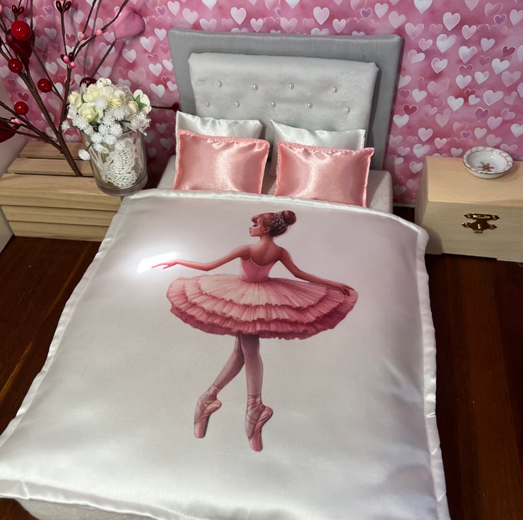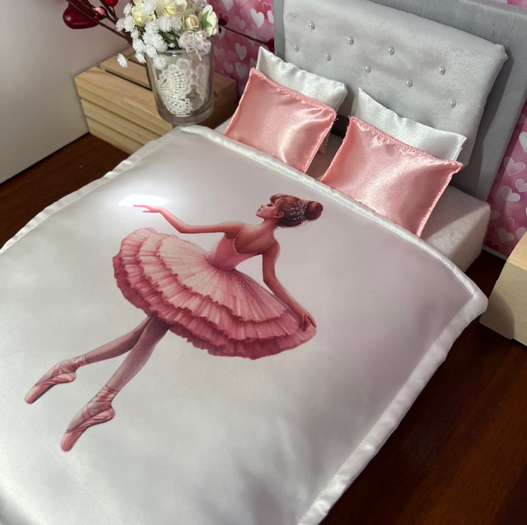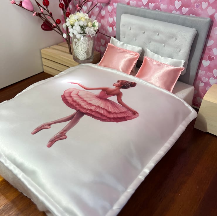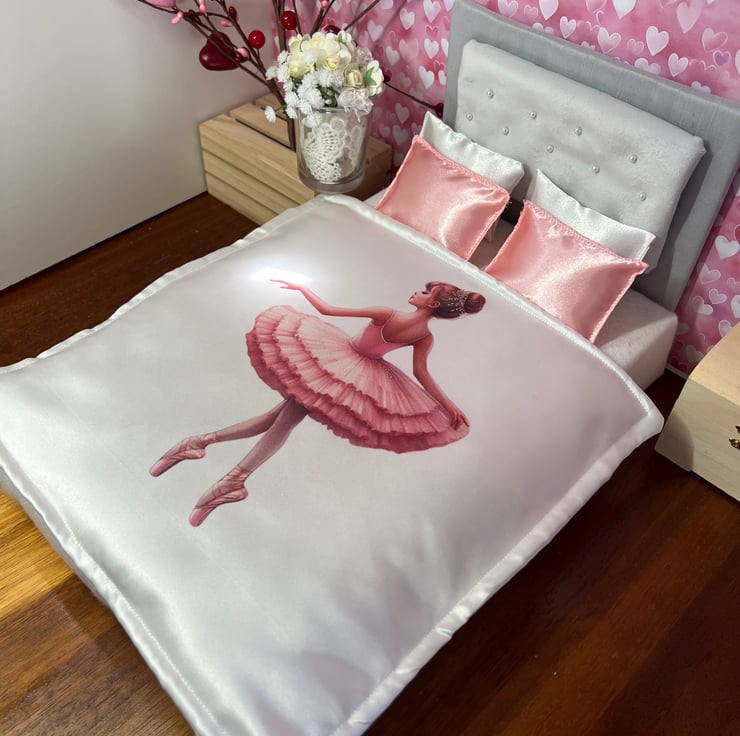 Babrbie doll Sized Bedding 1 6th scale pink ballerina ballet silk duvet pillows