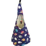 Inspired by the soft curves of a hanging birdhouse, The Nest Bag is a sculptural, cone-shaped accessory holder designed for weavers, spinners, and textile lovers. Handcrafted from 100% cotton here in the UK, it holds your tools, yarns, and fibres without the clutter of zips or compartments—just one spacious opening for effortless making.