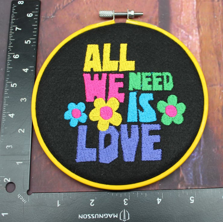 All We Need Is Love” – Colourful Embroidered Hoop Wall Art ornament