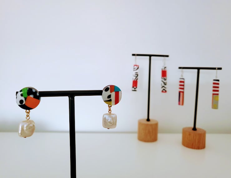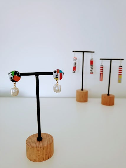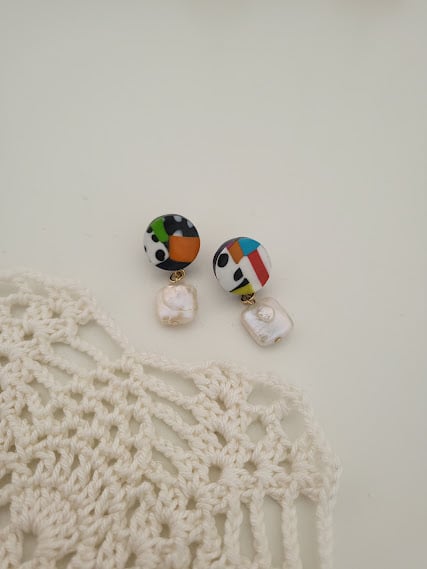 Our design journey for these earrings began with a desire to capture a sense of playful abstraction. The polymer clay top is inspired by the simple yet captivating power of dots and abstract shapes, reminiscent of contemporary art installations or even the charming chaos of a painter's palette. We deliberately paired this modern, artistic element with the raw, untouched beauty of baroque freshwater pearls. The irregular, lustrous pearls act as a grounding, organic counterpoint to the vibrant, structured top, creating a harmonious blend of crafted artistry and natural wonder.