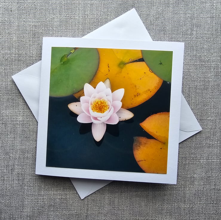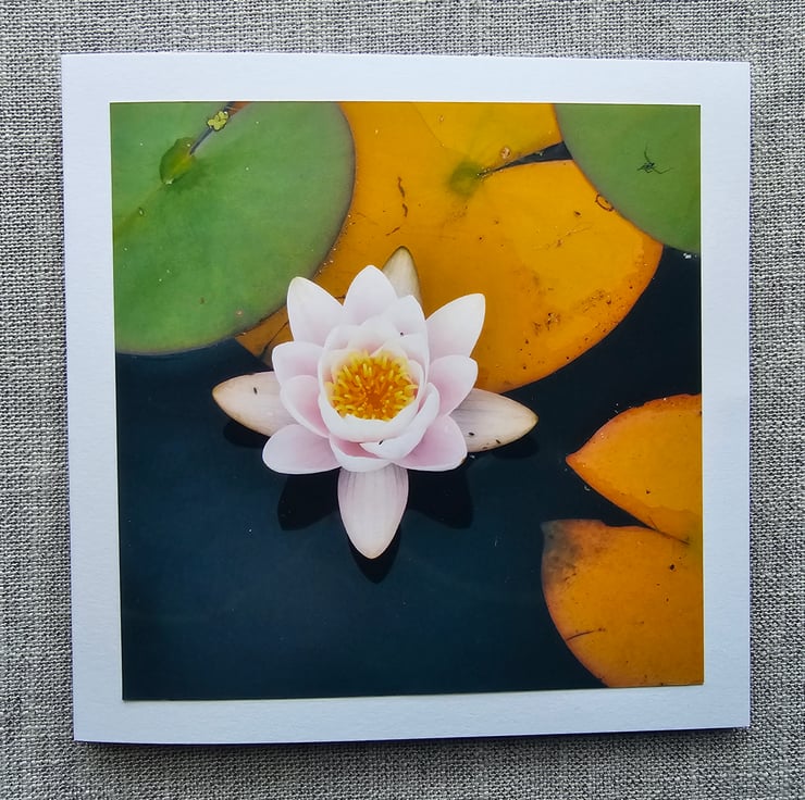 A photo taken in Bodnant Gardens on a visit in September 2020. I just like how the yellow and green lily pads frame the flower and contrast with the dark background. A blank card suitable for ANY OCCASION, for BIRTHDAY or GET WELL wishes , to send a THANK YOU note, etc.