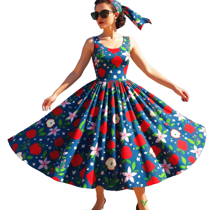 Get ready to rock the 50s look with this vintage style midi dress by Tuxcat This circle skirt dress features a cute apple print, perfect for any occasion. The scoop neckline and sleeveless design add a touch of elegance, while the zip closure makes it easy to wear. Crafted with in polycotton this dress is both comfortable and stylish.