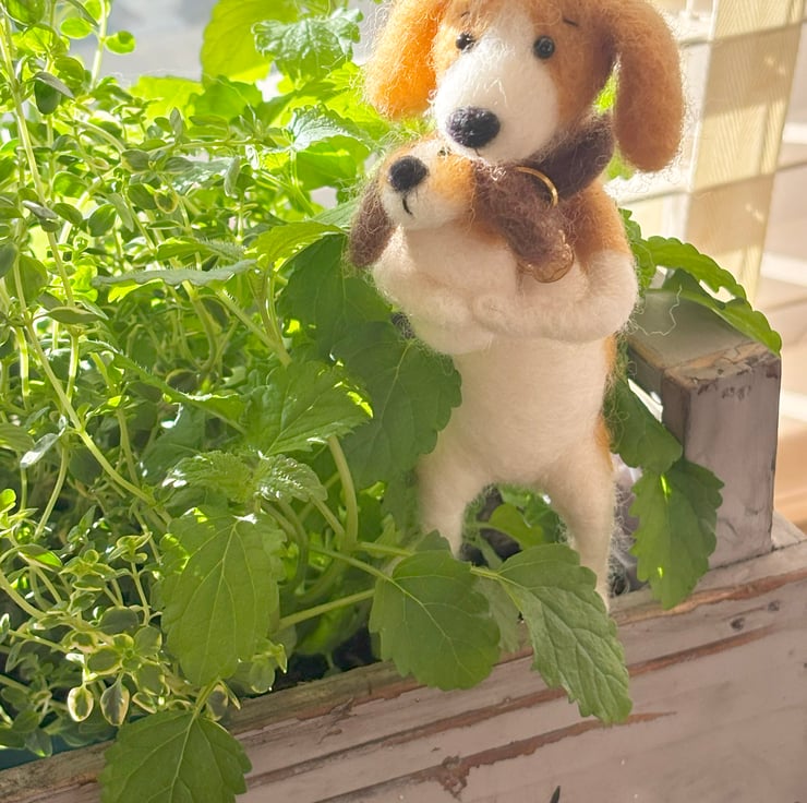 Only good homes please - a needle felted dog is for life not just for Christmas! These items are delicate and are not suitable for young children due to small parts.