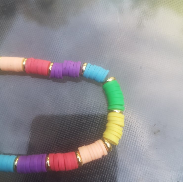 Got some plastic beads to use up and this is what I came up with, wanted something to go between the colours so used my gold plated spacers. A bit time consuming when putting together as each colour is 8 beads then the spacer but I enjoy making except when I drop them over the floor.