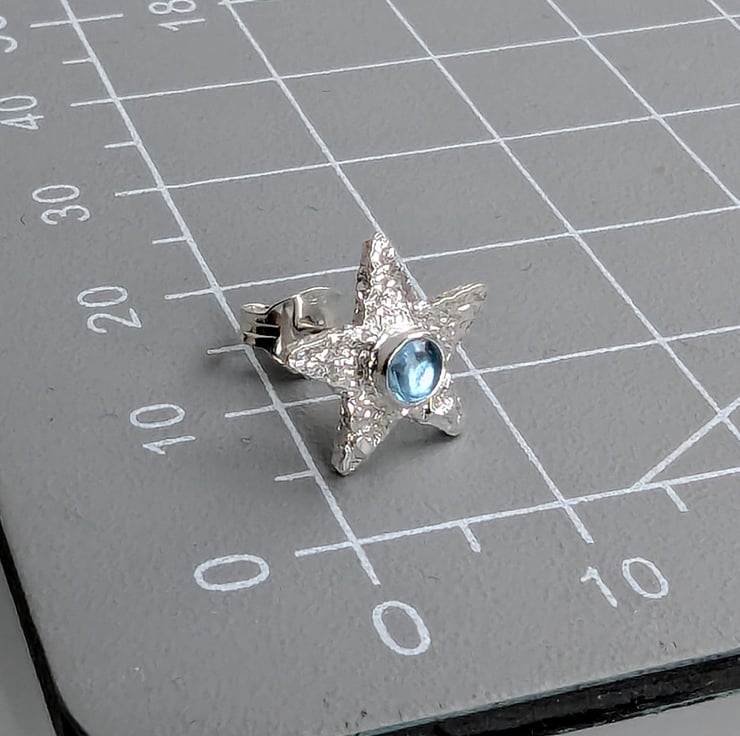 Weekend Sale Until Recycled Handmade Sterling Silver Star Swiss Blue Topaz Stud