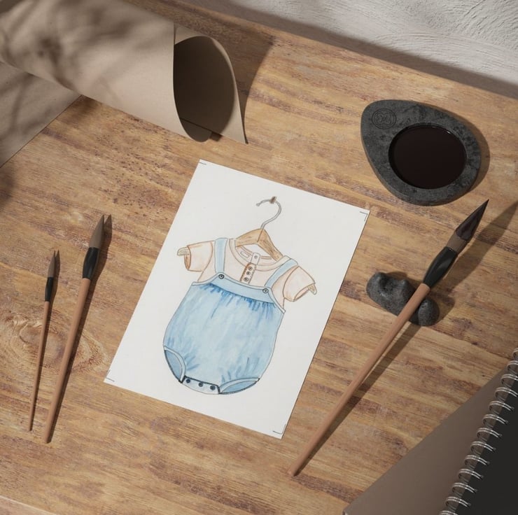 There’s something so special about how tiny clothes can hold memories. I wanted to capture that feeling in a gentle watercolour style—something that could be sent as a card but kept as a keepsake.