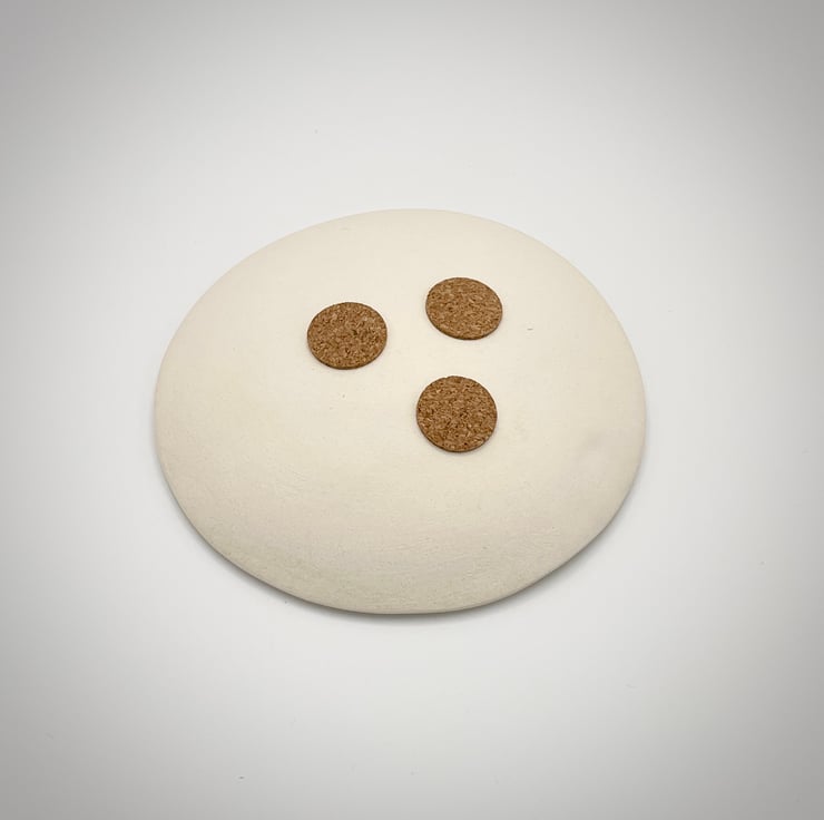 Self-adhesive cork has been applied to the base to protect surfaces.