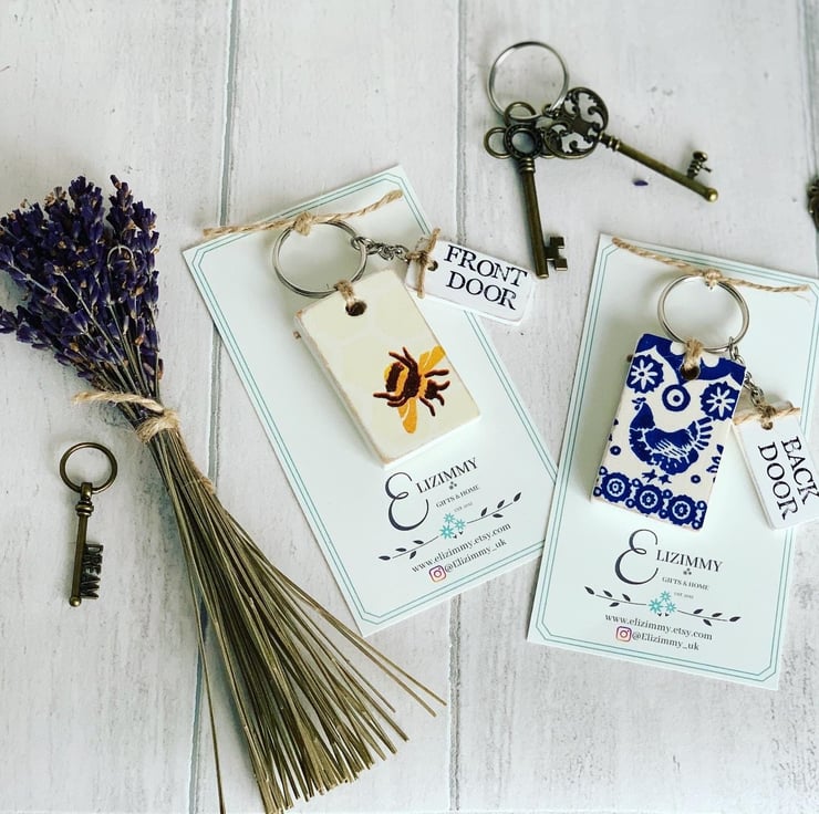 Each key fob is completely unique and handmade by myself and our Elizimmy team. Because of the handmade and unique nature of this product there will be slight differences in the finish, size and pattern of your item and unfortunately we are unable to send out specific pictured key fobs, you will receive one in your selected design chosen at random. Please be assured however that only top quality products are sent out and the item you receive will always be to the highest standard of workmanship.