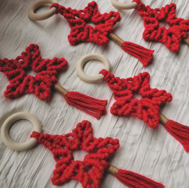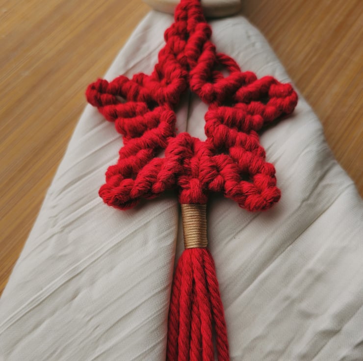 Handmade Red Macrame Star Napkin Ring – Christmas Table Decor
