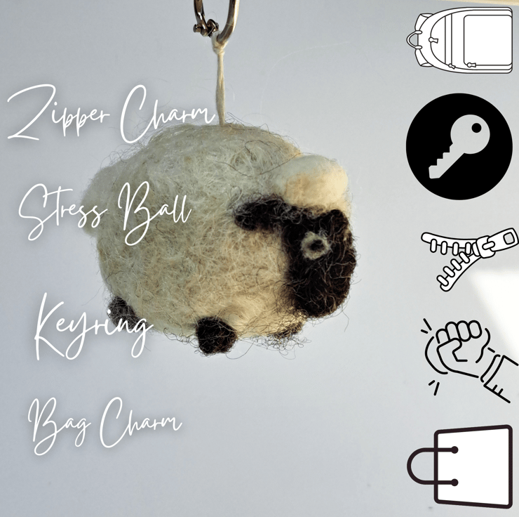 Shauna is a handmade wool sheep that fits right in as a keyring, bag or zipper charm, miniature stress reliever, or even a tiny woolly pet to keep you company. Each one is lovingly crafted using traditional wet and needle felting techniques.