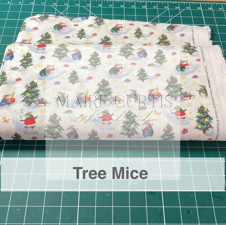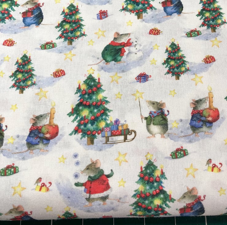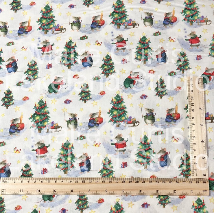 Tree Decorating Mice cotton quilt fabrics from quarter metre