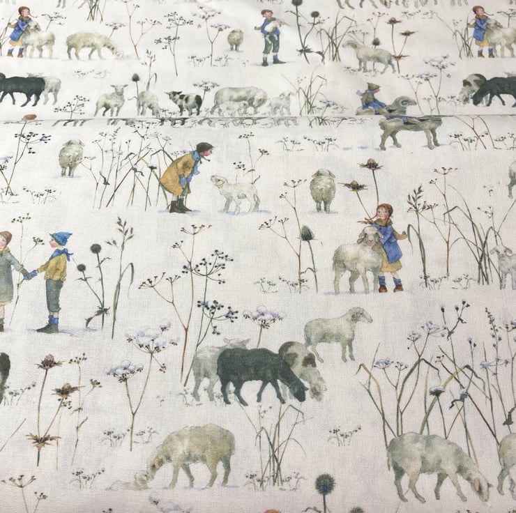 Children and Sheep Aufactum printed fabrics from our Enchanted Yule slow stitch collection per 1/4 metre.