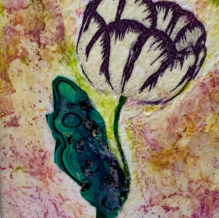 This card has been created using mixed media with the art of decoupage on Indian rag paper