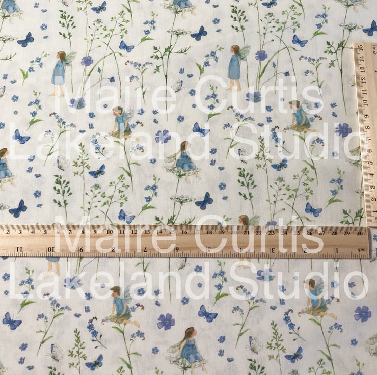 Elf Garden Blue cotton quilt fabric from quarter metre