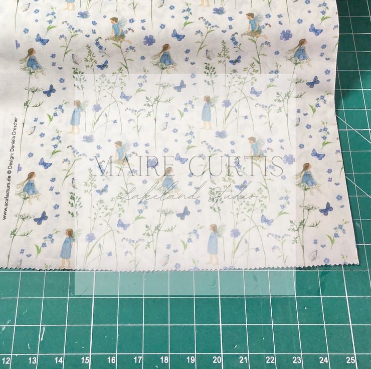 Elf Garden Blue fabric from Acufactum which feature in our Flower Fairies slow stitch collection per 1/4 metre.