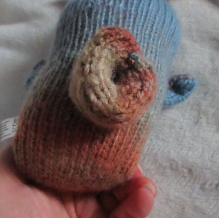 Brown and Blue "Rusty" Gradient Midi Bunny with Creamy Eyes Knitted By KittyMumma
