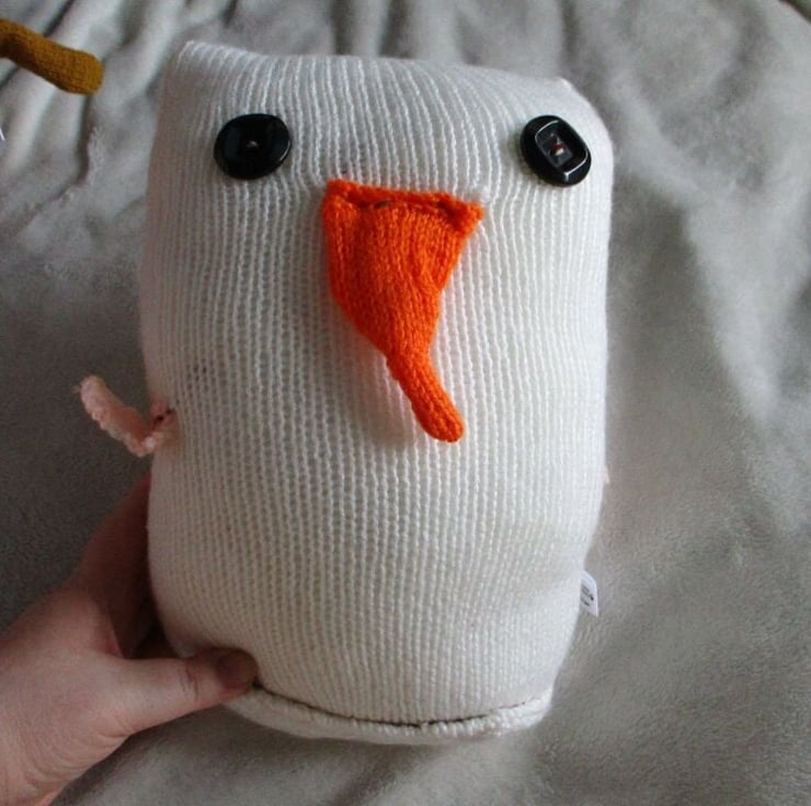 Plain White Snowbird with Black Square Inner Eyes Giant Owl Knitted By KittyMumma