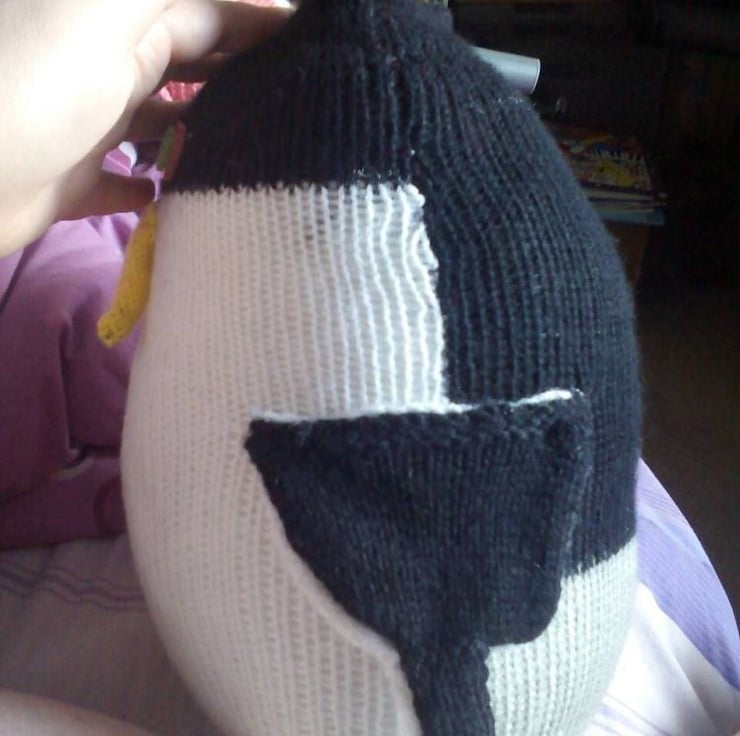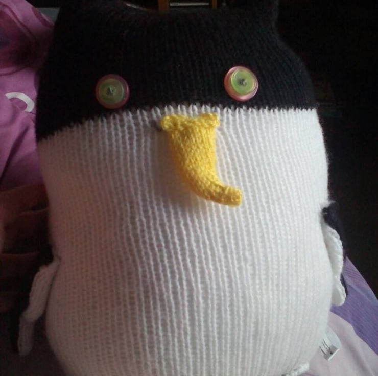 Black & White Giant Penguin - Yellow Beak with Pink / Green Eyes