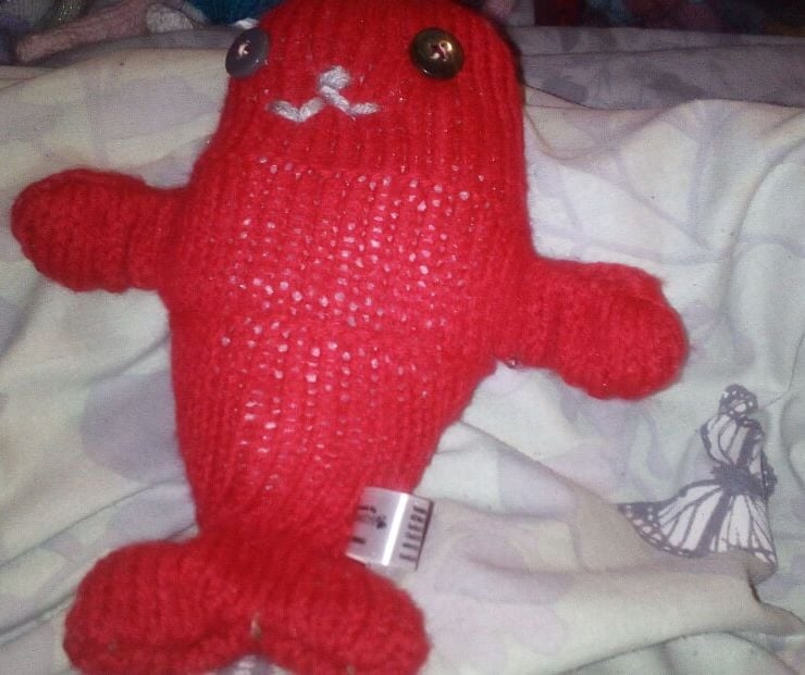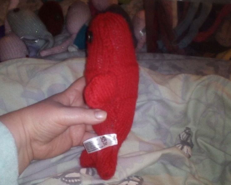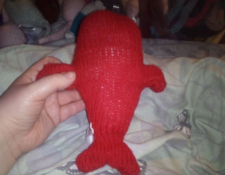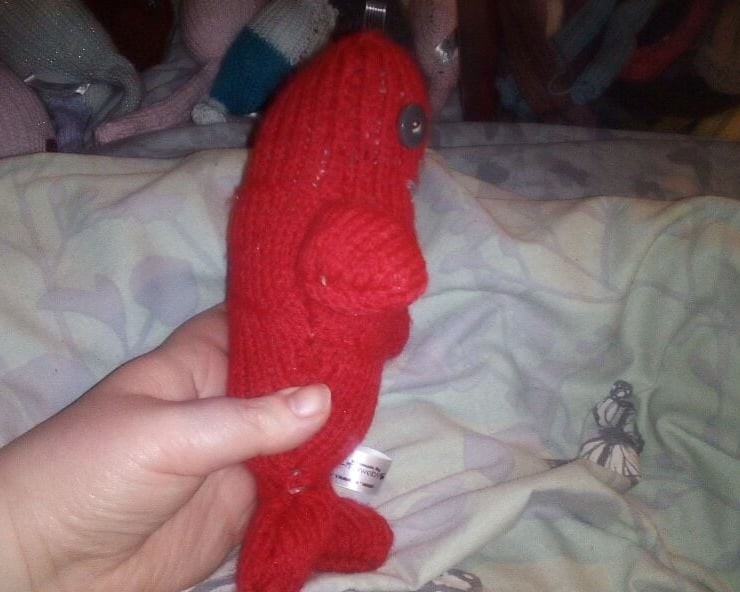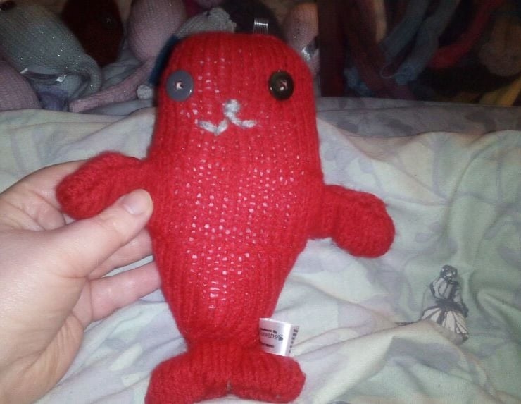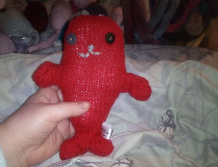 Red Hairless Midi Mermaid with Slate Dark Eyes Knitted By KM