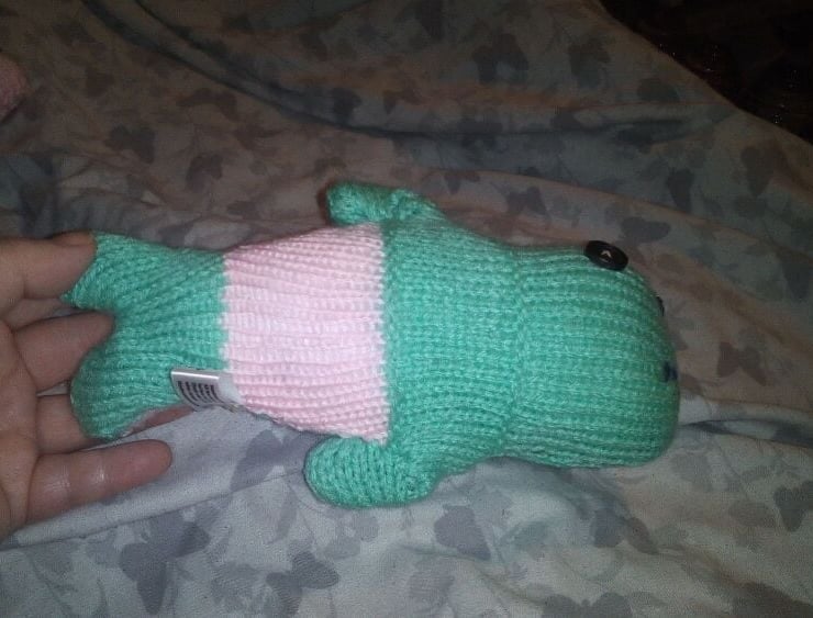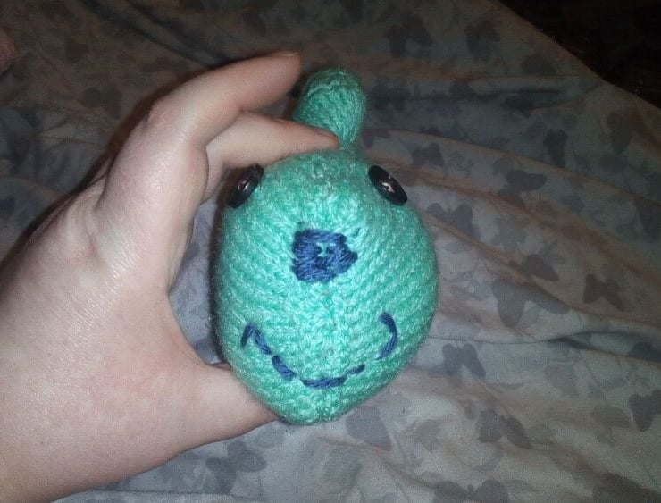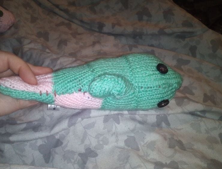 Mint And Pale Pink Midi MerFish with Black Eyes Knitted Soft Toy