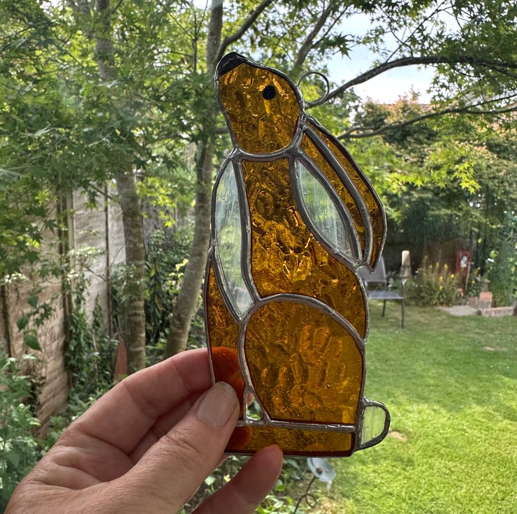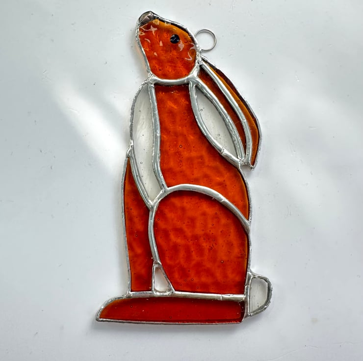 Hare suncatcher made in beautiful stained glass by Carole’s Glass.