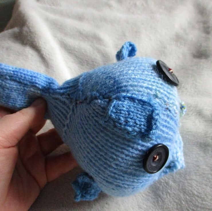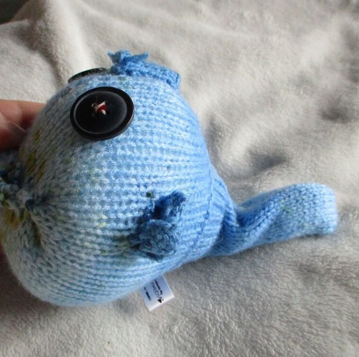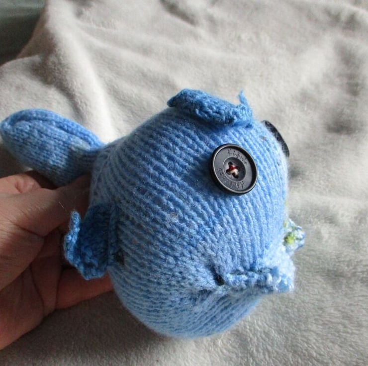 Floral Blue Midi Fish with Big Black Eyes Knitted Soft Toy