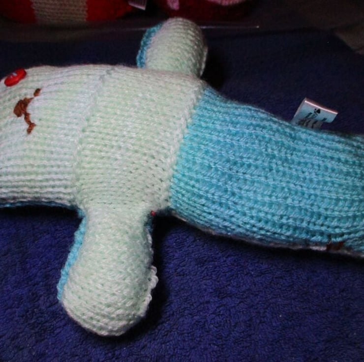 Mint and Aqua Hairless Midi Mermaid with Red Blue Eyes Knitted Soft Toy