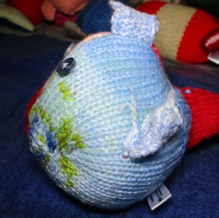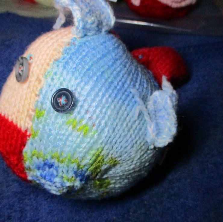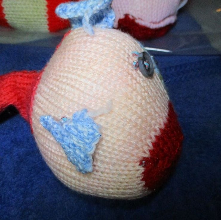 Peach Red Blue Rainbow Midi Fish with Grey Blue Eyes Knitted Soft Toy