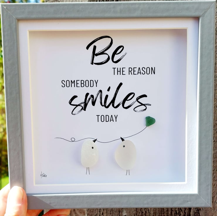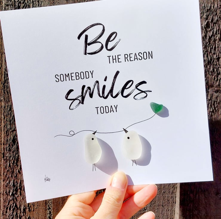 Everyone love quirky sea glass birds and this design, with it's beautiful and uplifting quote, can't fail to raise a smile :) This design features large pieces of sea glass, perfectly tumbled, and a beautiful green heart, shaped by the ocean.