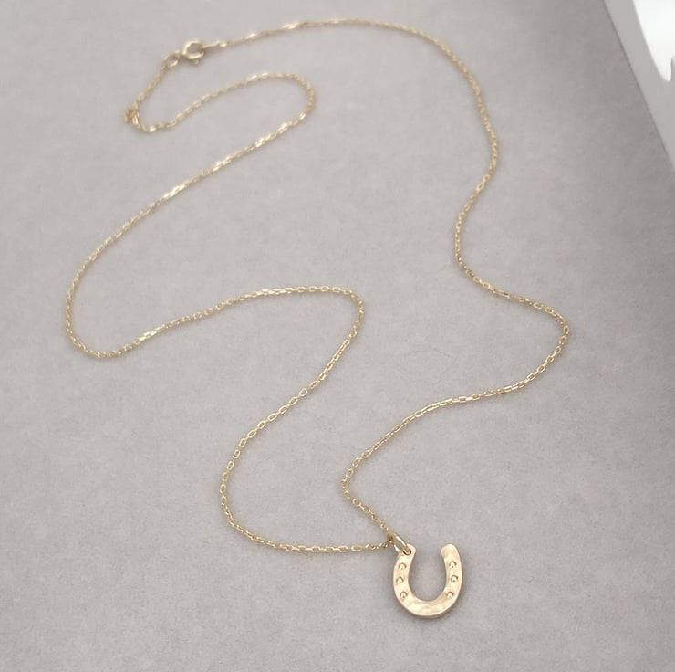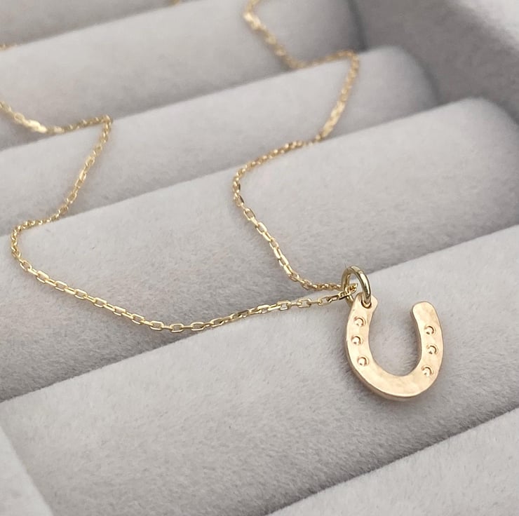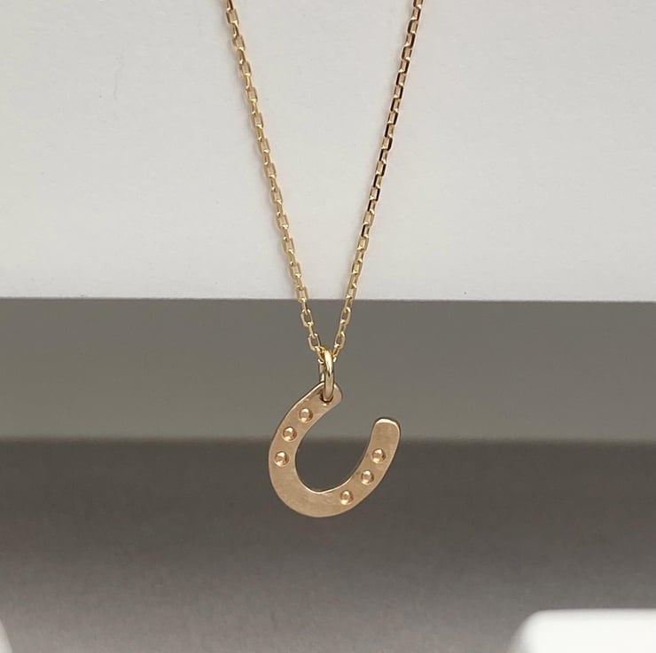 Handmade 9ct solid yellow, rose or white gold lucky horse shoe charm and chain