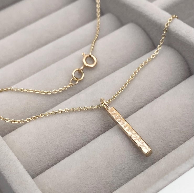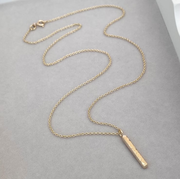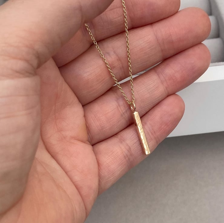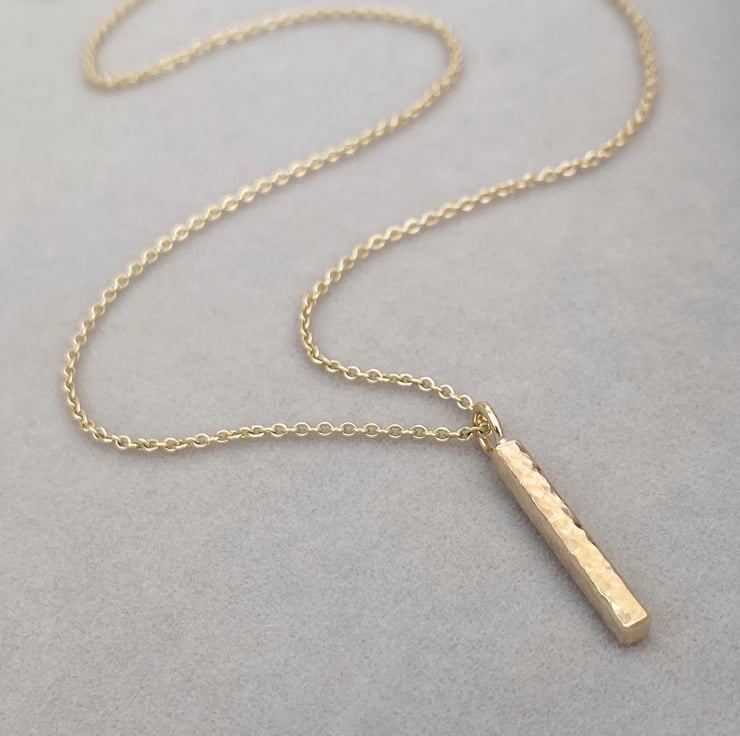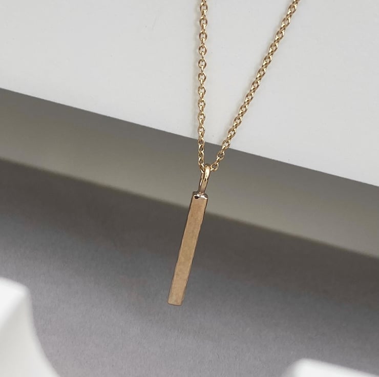 Handmade 9ct solid yellow, rose or white gold ingot bar charm pendant and chain