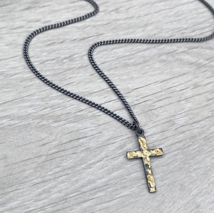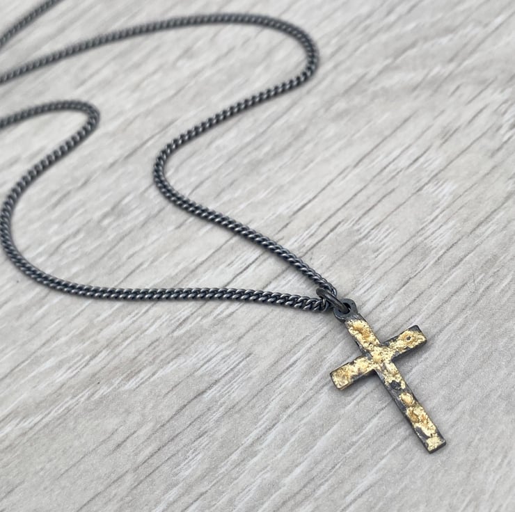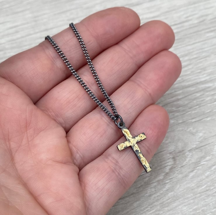 This is a unique limited edition silver cross with fused 18ct yellow gold dust.