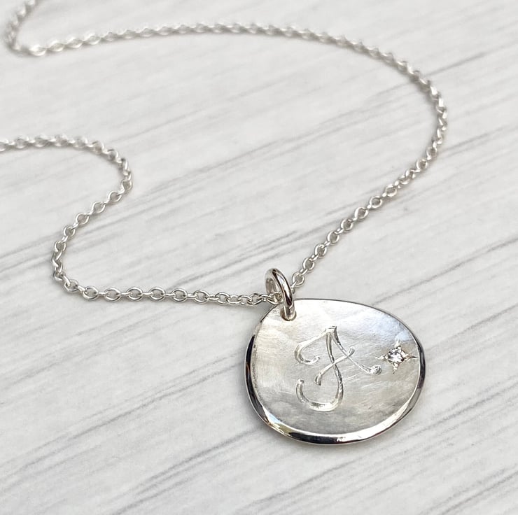 16mm solid silver pendant with a kiss engraved set 1.5mm HSI diamond