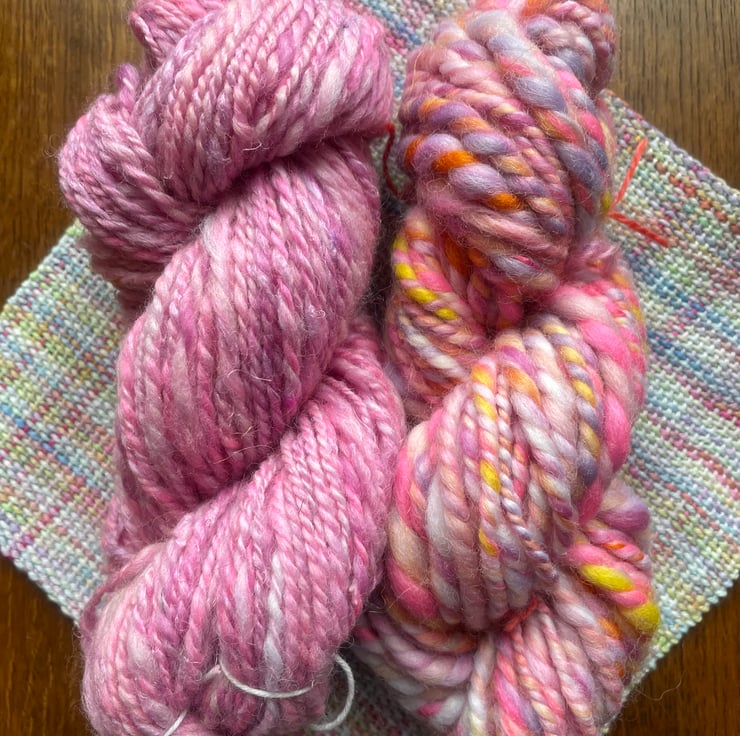 I love blending colours on my drum carder and spinning yarn that you can't buy in the shops! The real joy for me is in the blending and spinning, and I know how difficult and prohibitively expensive it can be to get set up with all of the supplies and equipment required to make art yarn like this, which is what motivates me to share it with you! Maybe you've been dreaming of making beautiful weavings but don't have the time to learn how to spin, that's where I come in <3