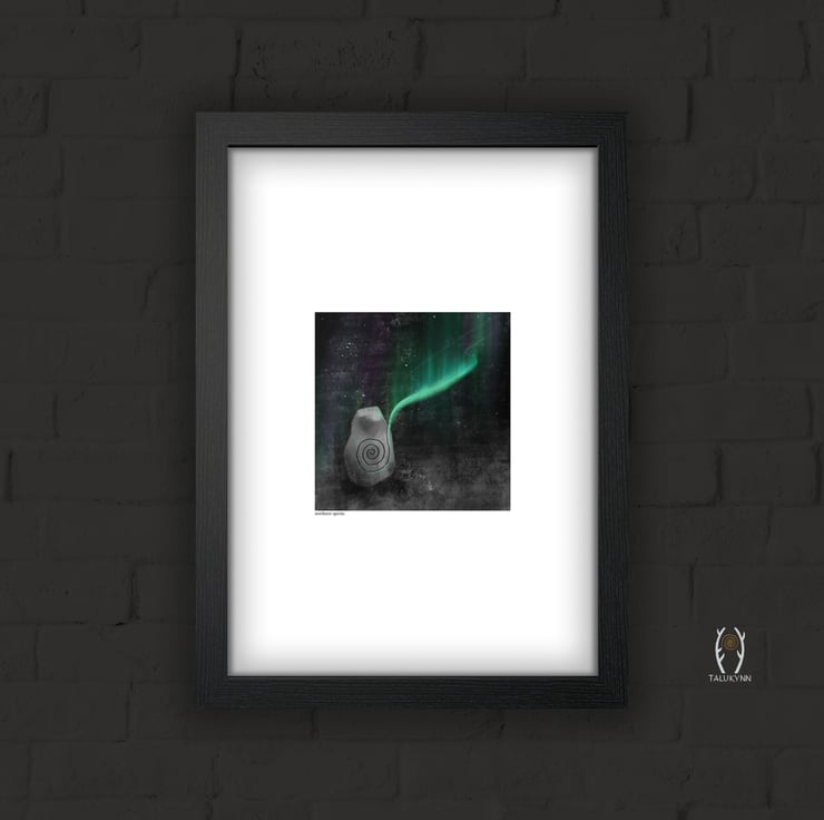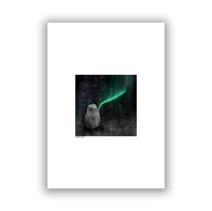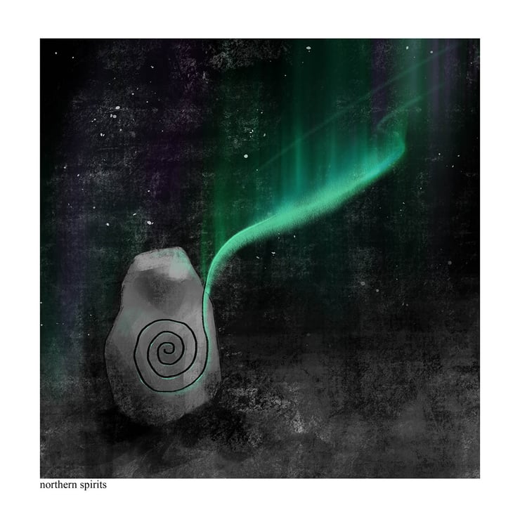 An illustration inspired by various folklore surrounding ancient stone monuments and the northern lights.
