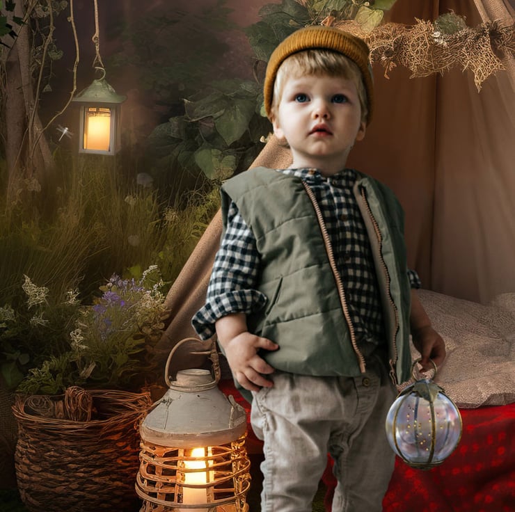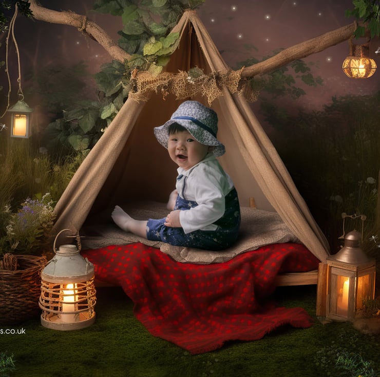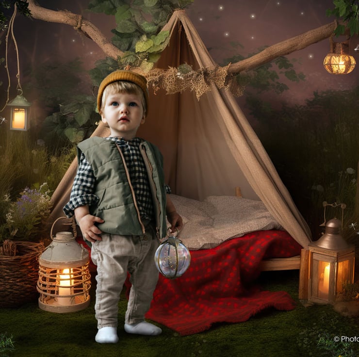 Capture your child’s imagination, placing them into their own magical setting! Perfect for your little adventurer, this playful scene is ideal for babies and young children - they'll love seeing themselves in a cosy tent on their very own exciting camping trip!