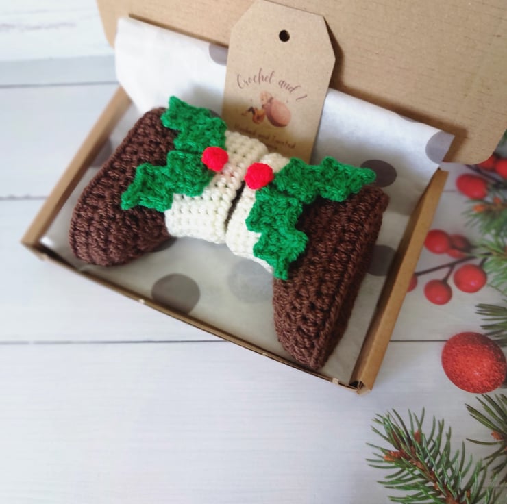 Add a festive touch to your baby's first Christmas with these adorable handmade Christmas pudding baby booties. Lovingly crocheted in soft brown and cream shades, they’re finished with a folded cuff and a cute holly leaf and berry detail — securely stitched for safety.