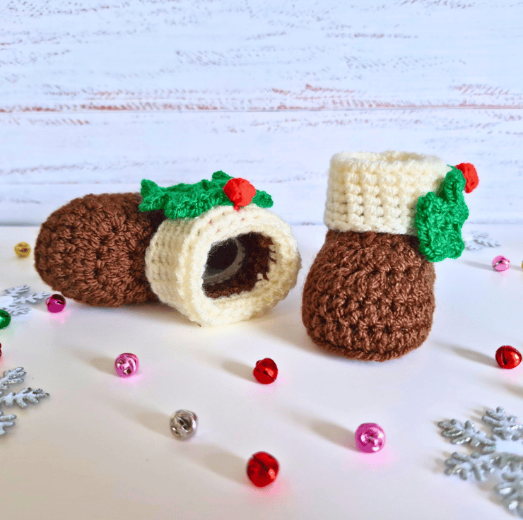 Handmade Crochet Christmas Pudding Baby Booties – Newborn to 6 Months