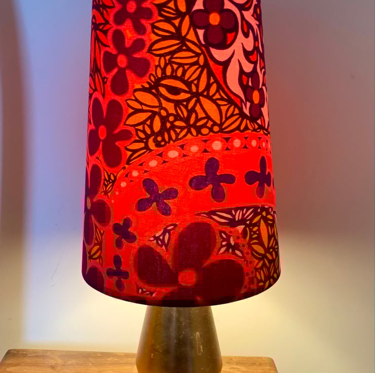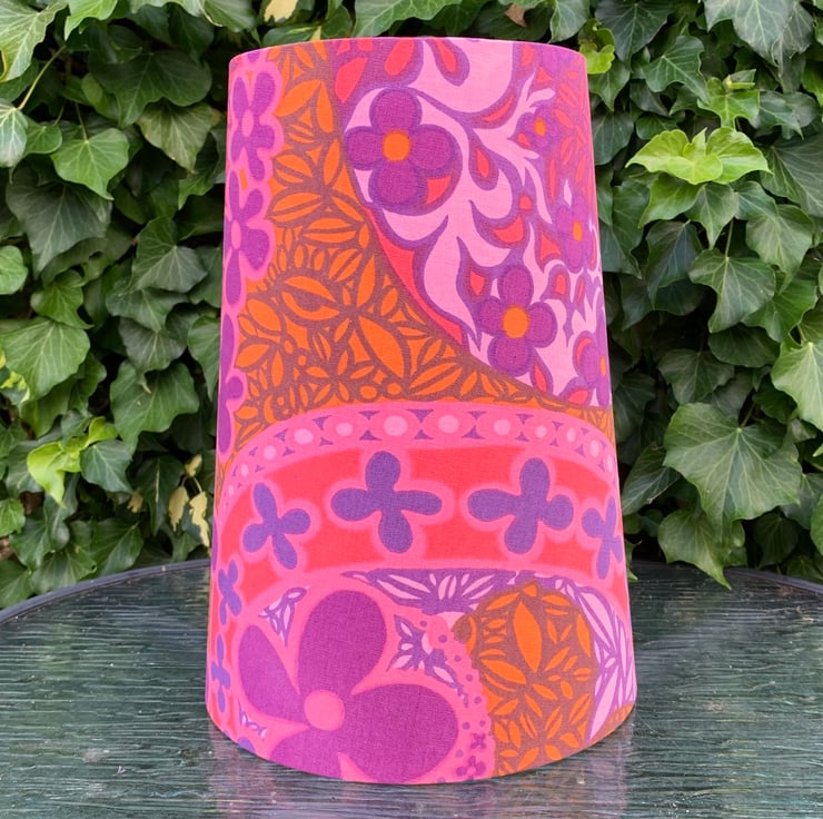 Retro Psychedelic Groovy Pink Orange CARNABY 60s 70s Tetra Vintage Fabric Lampshade - a bold feature fabric for a lampshade in a modern or retro home.