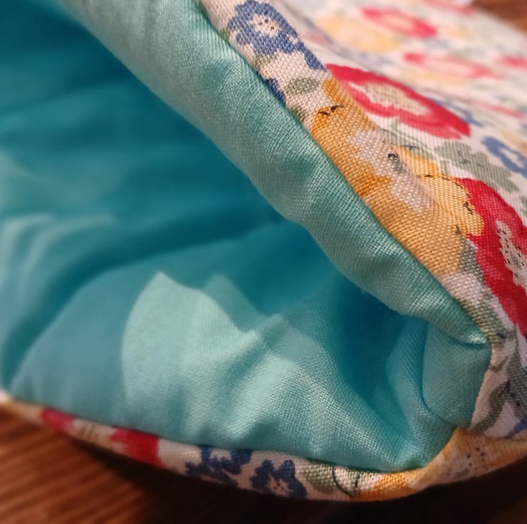 Brighten your kitchen with this beautiful handmade tea cosy. Lined with wadding, it will keep your tea nice and hot!