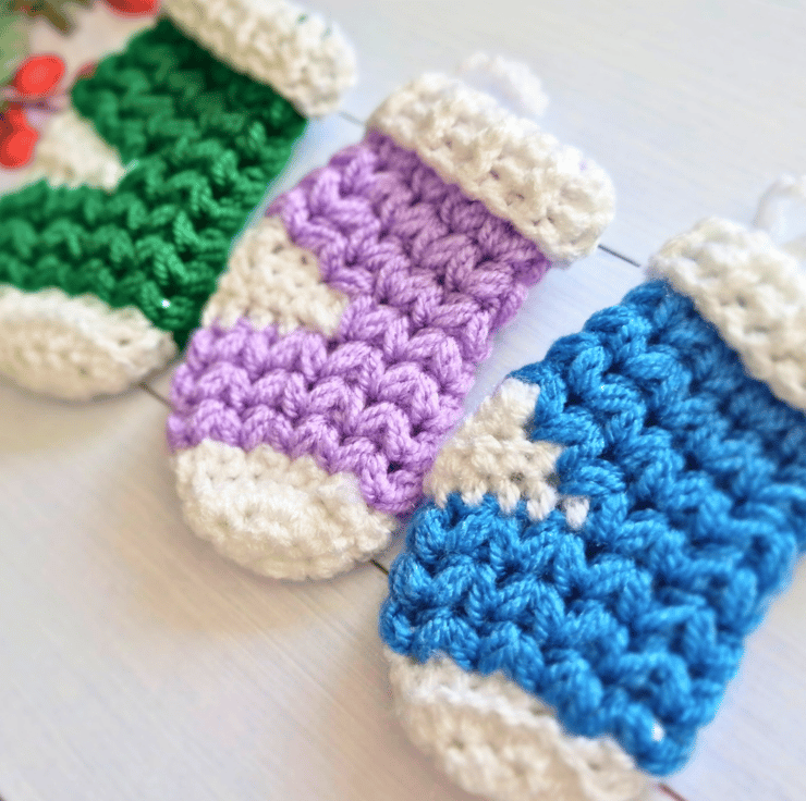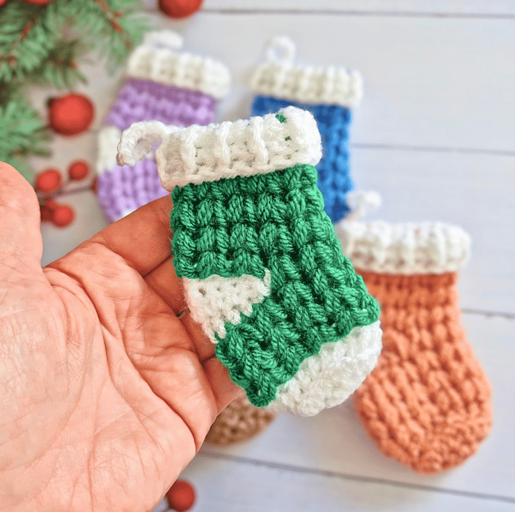 Mini Crochet Christmas Stockings – Set of 5 – Tree or Festive Hanging Decorations – Ready to Ship