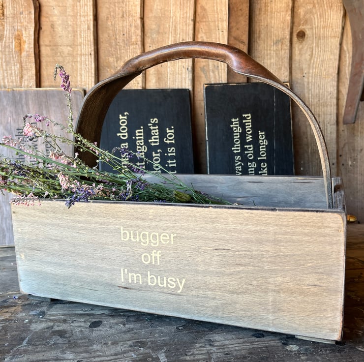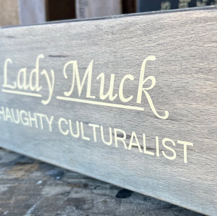 Lady Muck is renowned for her extensive knowledge of all things garden wise. ( and her imperiousness). If you know her then this is the perfect gift. Made from off cuts of ply. Aged an patinated. Buffed and fluffed to the nth degree then varnished with an eco friendly matt finish