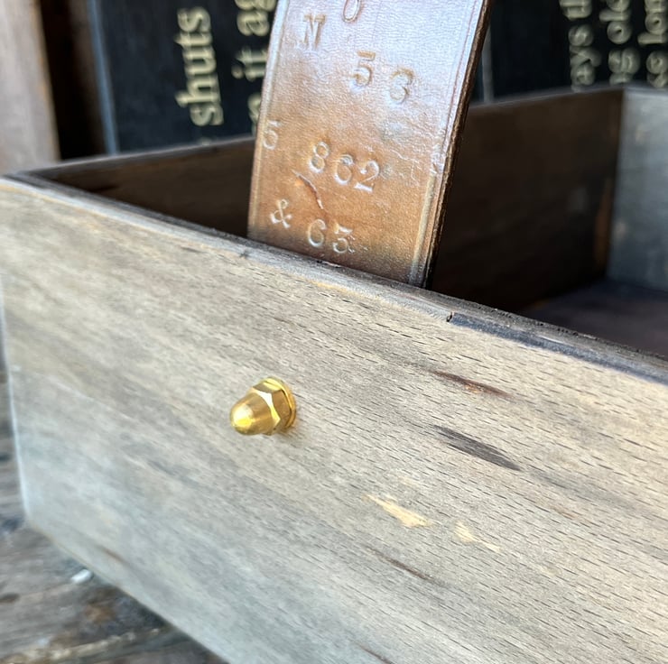 The leather handle, over 100 years old, is similarly polished with a deep wax shine and is attached with solid brass fittings