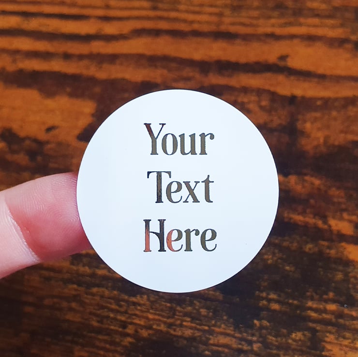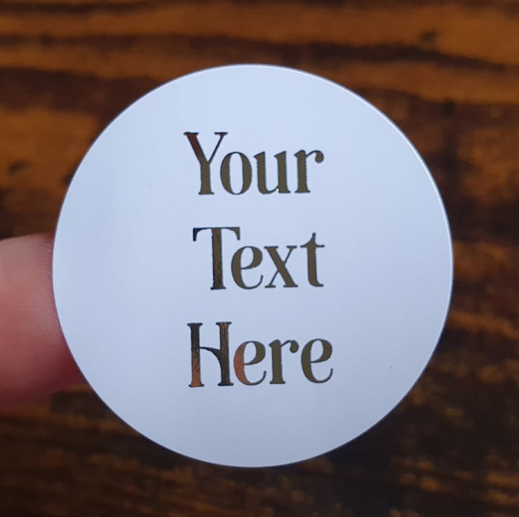 35 x Foiled Custom Personalized Any Text 37mm Stickers - Small Business Supplies