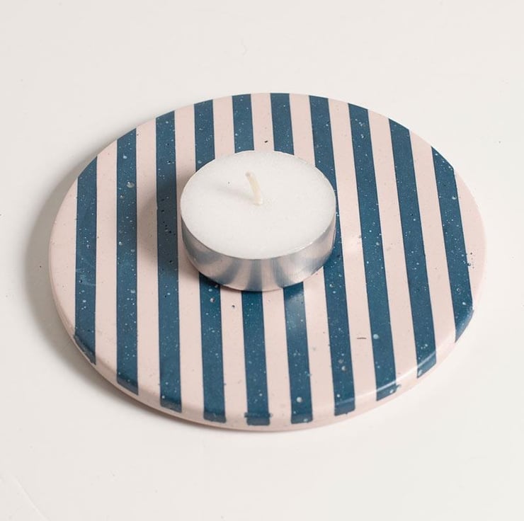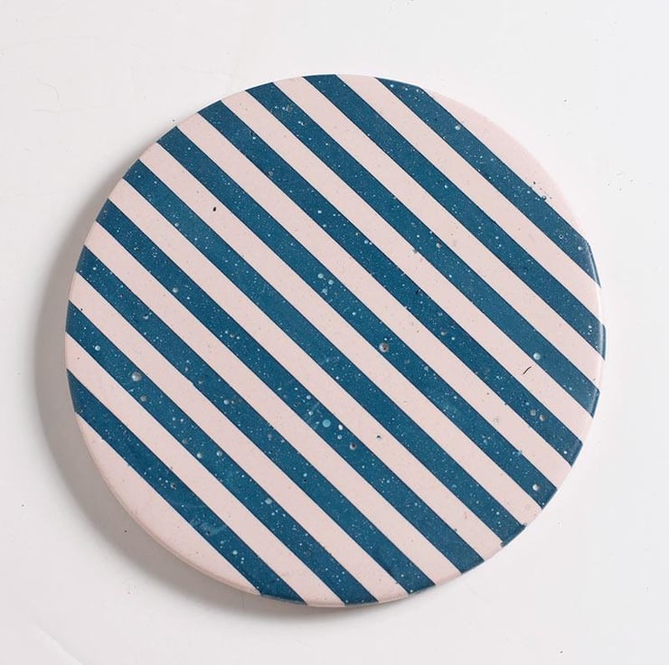 Blue Stripe Coasters, Handmade Jesmonite, Cork Concrete Ceramic, Coffee Coaster