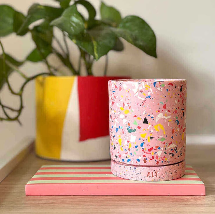 Terrazzo Plant Pot Jesmonite Pink, Indoor Planter with Drainage saucer & tray